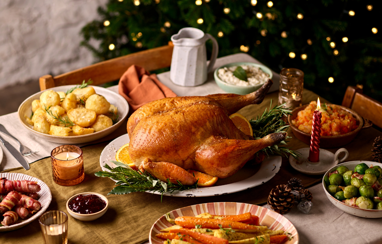 Boneless free range turkey breast is generously stuffed with a sage and caramlised ionion sausage meat stuffing before being wrapped in dry cured streaky bacon, creating a wonderfully succulent and flavour-packed centerpiece. Carefully prepared by our skilled butchers, each joint is ready to roast,...- from £28.50